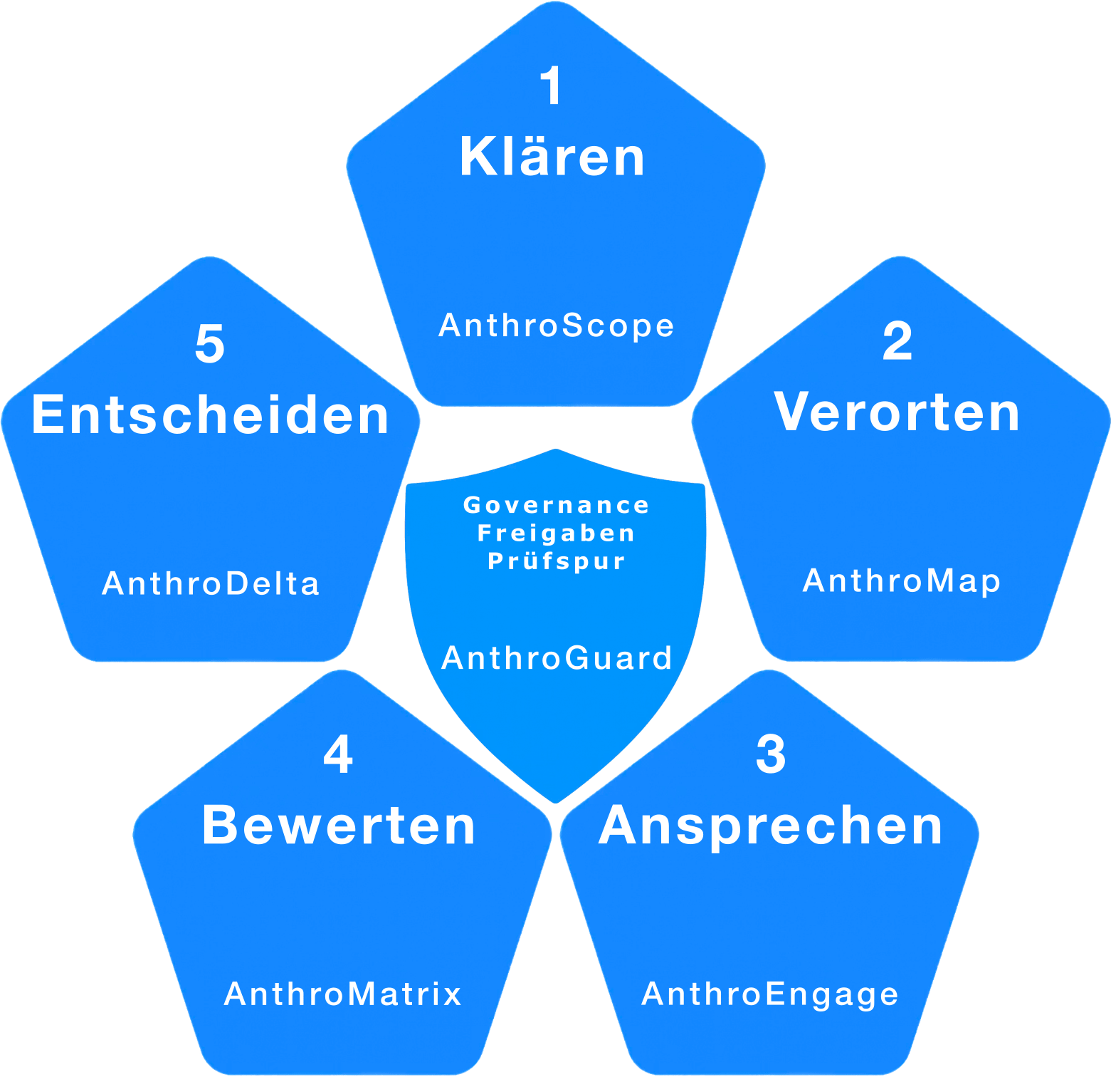 AnthroGuard ist die Governance-Schicht: Datenabgrenzungen, Zugriffsregeln, Freigaben, Fairness-Schutzmechanismen, Dokumentation und Prüfspur.